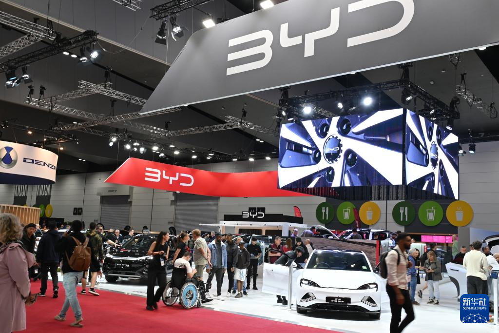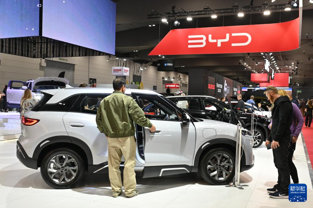 4月10日,人们参观澳大利亚墨尔本车展上的比亚迪汽车展台。 新华社记者 徐海静 摄