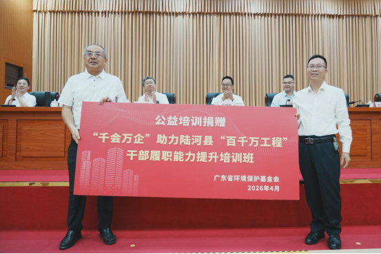 开班式上,广东省环境保护基金会向陆河县作了“百千万工程”环保公益培训课程公益捐赠。