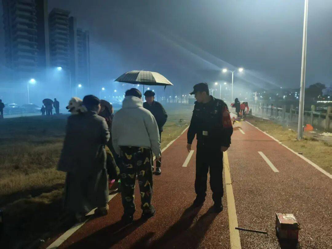 当零点钟声叩响,阖家团圆的欢呼声漫过宜丰的街巷楼宇,有这样一群人,正踩着寒夜的霜露穿梭在城市的角落。他们暂别了自家的年夜饭桌,以脚步丈量平安,以坚守守护“新春蓝”——他们是除夕夜奋战在烟花爆竹管控岗位的“守夜人”。